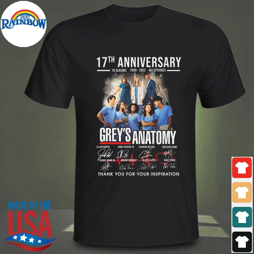 Grey’s Anatomy 17th anniversary 19 seasons 2005 2022 thank you for the memories signatures shirt